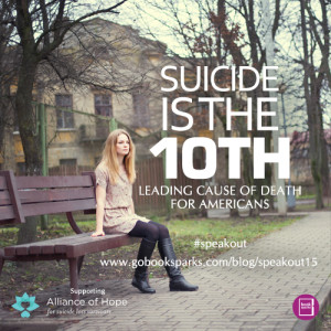 On Sept. 10, 2015, we asked our community to join with us to #SpeakOut for suicide prevention and suicide loss survivors. THANK YOU for all of your support! Because of your help spreading the word, inviting others to #SpeakOut and by purchasing Kelley Clink’s memoirĀ A Different Kind of Same, we were able to raise money and awareness forĀ Alliance of Hope for Suicide Survivors.Ā This non-profit organization provides healing support for people coping with shock, grief and complex emotions that accompany the loss of a loved one to suicide.