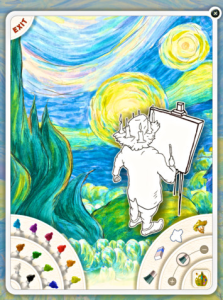 Drawing from actual events in Van Gogh’s life, Laurence Anholt’s book weaves a story about how a little boy named Camille befriends the artist. Camille and his family appeared in paintings created by Van Gogh. This interactive story reveals how, although Van Gogh painted vibrant paintings of the village people and its surroundings, the townspeople of Camille’s village thought the painter was odd and ostracized him. But Camille and his family accepted Van Gogh and saw the genius of his work. The book contains 19 puzzles which kids play to bring the characters within the book to life. By tapping illustrations of characters, kids can activate a mode that lets them see the gears and mechanisms that would make the character move. By tapping again on the character, the mechanisms spring apart so that kids can connect them once again. When they do, the character will now appear to animate in the story. Kids can also use simple art tools to repaint the characters so that they appear on the pages how they would like them to look. With soothing background music and the ability to be transported to a museum for closer inspection of Van Gogh’s work, this is a great way for kids to learn about this artist and 10 of his famous paintings.