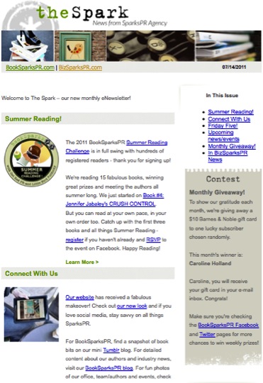 The first issue of The Spark – Spark PR’s monthly e-newletter – was released on Thursday!